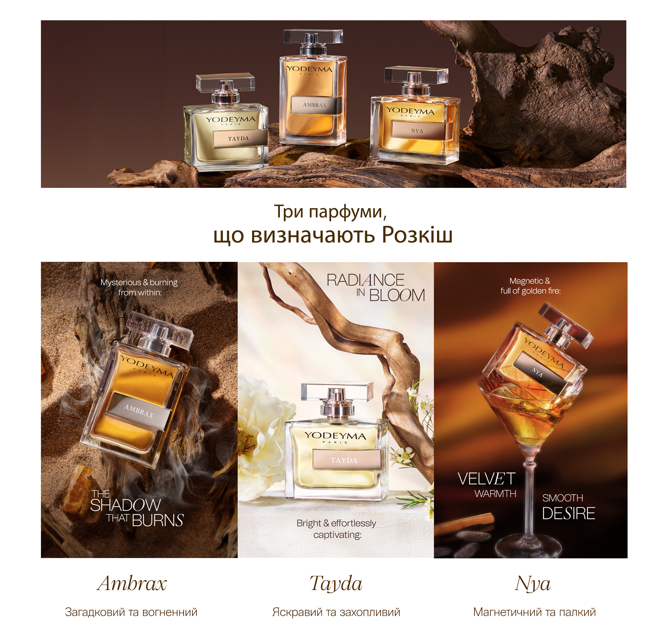 Це насичений та вишуканий аромат, ідеальний для тих, хто має сильний характер і хоче виділитись. Він натхненний пустелею, піщаними дюнами, вируючим світлом і тінями на заході сонця, а також відчуттям безкінечності та таємничості.